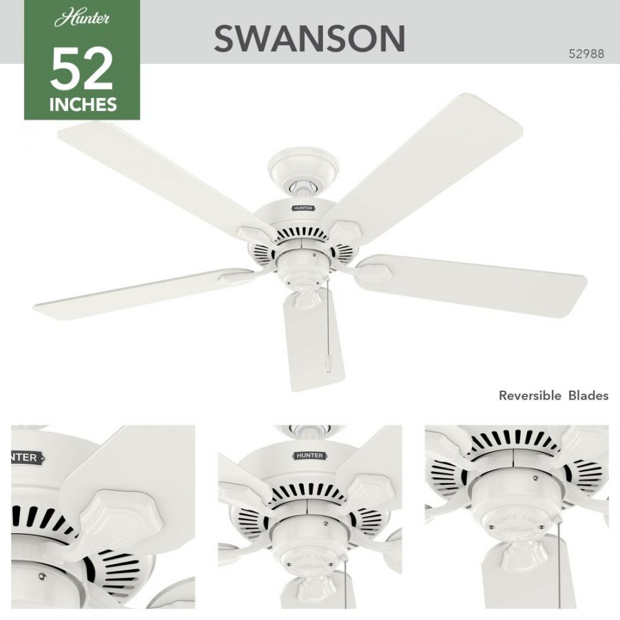 Presentamos el ventilador de techo sin luz Hunter Swanson, donde la elegancia se une a la sencillez.